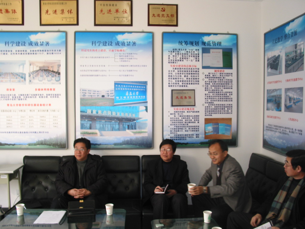 青岛大学资产设备处副处长纪文平首先简要介绍了他们评建工作情况和成功经验,随后详细介绍了以教学为中心,遵循优先满足本科一线教学需要,兼顾发展提高的工作思路,以及在评建中的工作情况。最后,考察团参观了迎评展室、学习了评建资料、交流了固定资产管理、物资采购及房产管理工作。
