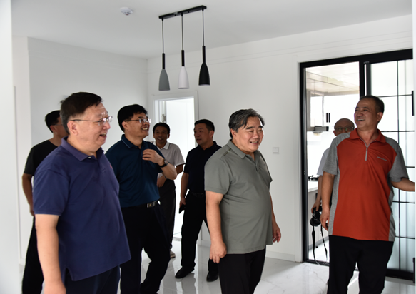 8月17日,校长姚庆国来到山海花园E区高层次人才公寓装修项目现场,实地察看装修情况,并与副校长张英杰一起为项目竣工启用揭牌。