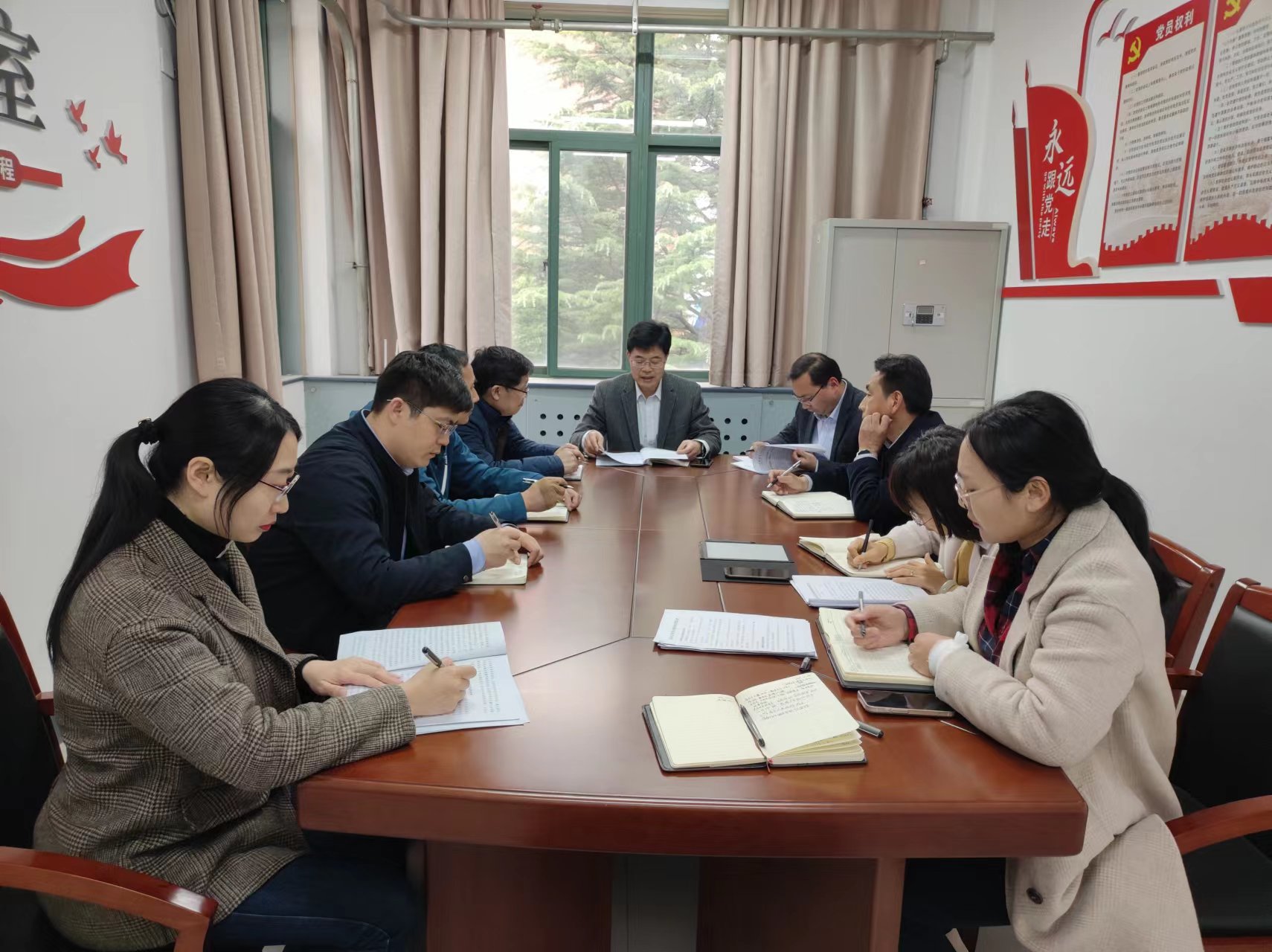 4月11日下午,资产管理处党支部在行政楼239会议室组织开展党支部(教职工)政治理论学习。学习由支部书记苏同营主持。