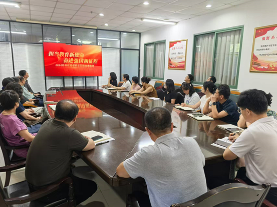 9月4日下午,资产管理处党支部、财务处党支部组织全体教职工党员共同观看由教育部精心策划的 “担当教育新使命 奋进强国新征程”2024年高校党组织示范微党课第1讲——《坚持教育科技人才“三位一体”,奋力谱写中国式现代化宏伟篇章》。