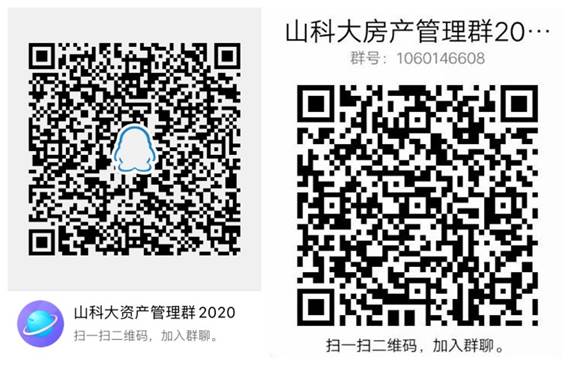 由于疫情原因,本次培训以视频自学的形式进行。7月1日-2日,培训视频将分别发送到资产管理员群和房地产管理员群(新建群二维码见文末,请各管理员扫码加入)。由各管理员以及相关老师自行学习,并将操作过程中的问题于7月4日下午17:00前发送到zcc@sdust.edu.cn邮箱,资产处将统一汇总问题,并于7月5日17:00前将问题答复发送至资产管理员群和房地产管理员群。